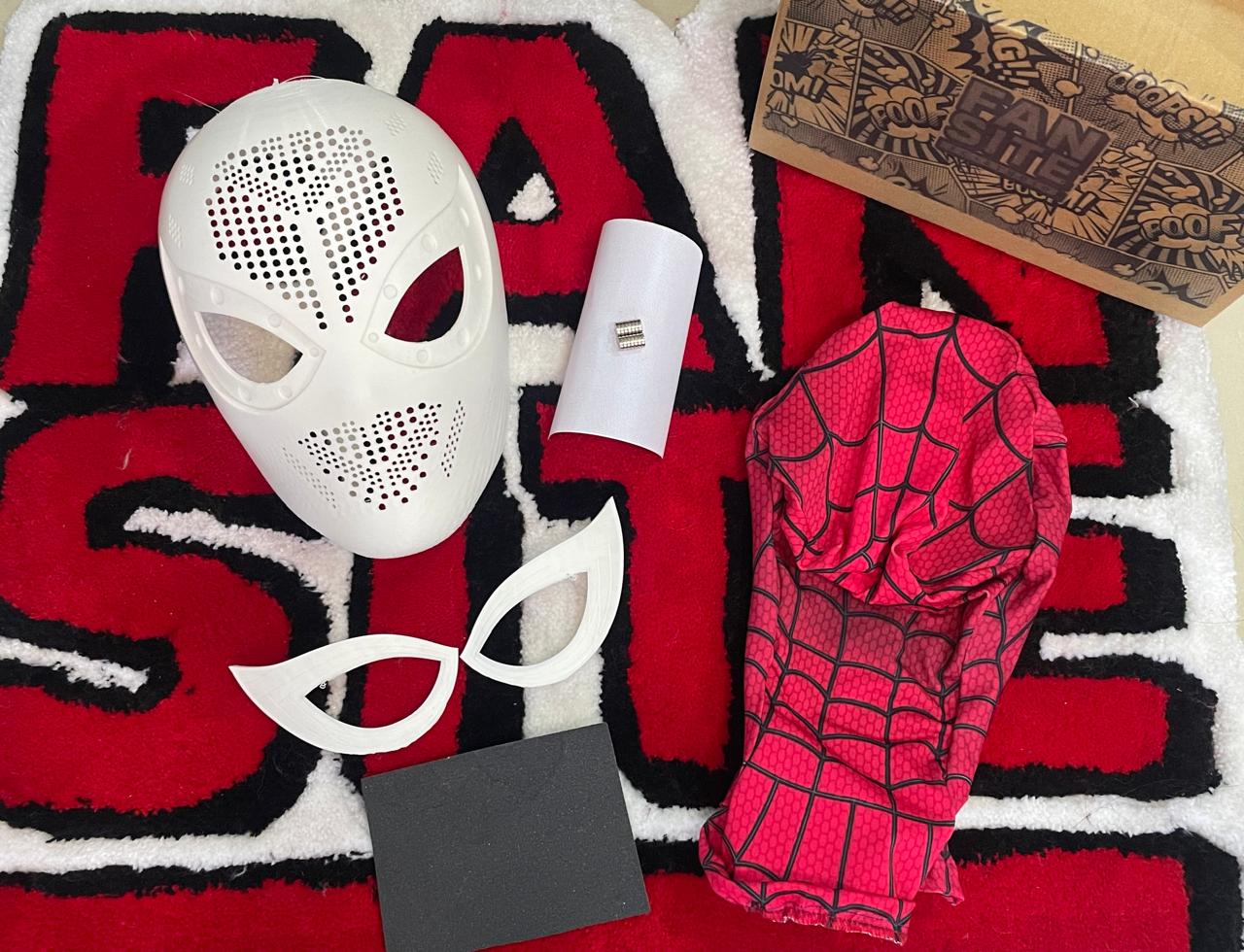 Nuestro kit, de la línea ármalo tu mismo, incluye impresiones en 3D en bruto de los lentes y la estructura del faceshell, imanes para que les pegues a tu faceshel, mallas para los ojos, una lija para los acabados y una máscara de tela lista para usarse sobre el faceshell